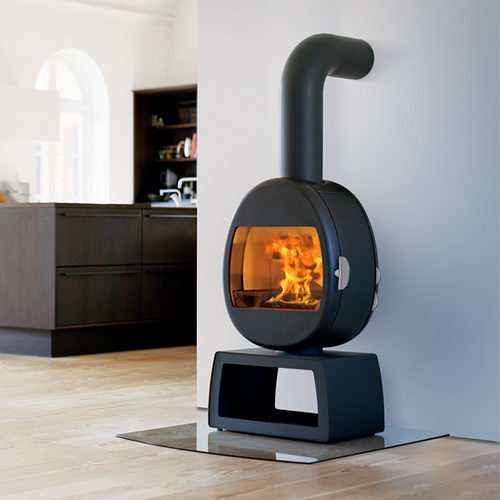 Необычный внешний вид характерен, например, для печи-камина Scan 57. Чёрная печь с боковыми панелями, выполненными из нержавеющей стали, смонтирована на поворотной колонне. Печи-камины такого типа набирают популярность в Европе.