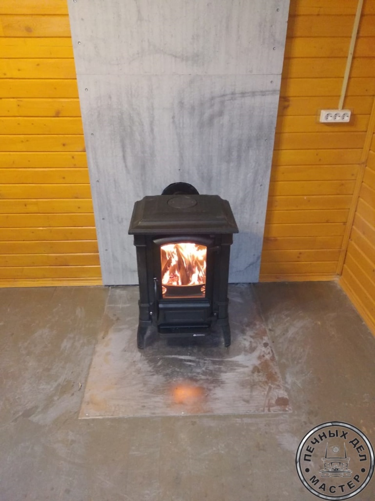9. Делается контрольный розжиг, а хозяин может делать отделку защитной стены плиткой или камнем по своему вкусу.